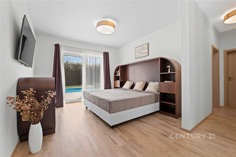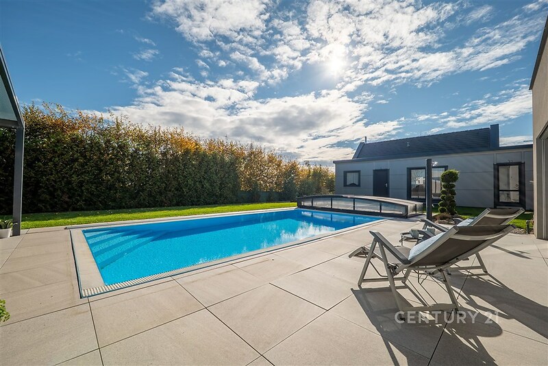 V obci Vysoký Újezd u Berouna, je na prodej nemovitost, která propojuje moderní technologie, promyšlenou architekturu a nadčasový komfort. Tento dům 6+kk s garáží, zahradou a přelivovým slaným bazénem nabízí harmonický životní styl, nikoli jen bydlení. Dispozice domu je promyšlená do posledního detailu – přízemí tvoří soukromé rodičovské křídlo s ložnicí, šatnou a koupelnou, zatímco v patře se nachází tři samostatné dětské pokoje s vlastní koupelnou. Dominantou přízemí je otevřený obytný prostor s kuchyní a přímým vstupem na terasu. Technologie zde pracují pro vás. O komfort se stará systém Loxone, který řídí osvětlení, žaluzie – připravený na rozšíření o plně inteligentní domácnost. Tepelné čerpadlo zajišťuje energetickou úsporu, podlahové vytápění a chlazení, Jablotron chrání dům a je napojený na pult centrální ochrany, kamerový systém Blink sleduje exteriér a optická síť O2 poskytuje vysokorychlostní internetové připojení. Na zahradě najdete přelivový slaný bazén Albixon (8×4 m) s tepelným čerpadlem, plně automatickou filtrací a možností koupání od dubna do října. Automatická závlaha napojená na retenční nádrž zajišťuje vždy dokonale zelený trávník. Součástí prodeje je i samostatný zahradní domek 3+kk (50 m²) – ideální pro hosty, rodiče nebo jako pracovní zázemí. Vysoký Újezd se pyšní výjimečnou občanskou vybaveností – novou školou, školkou, poštou, pizzerií Locale i obchodem. Milovníci gastronomie ocení Château Papillon Resort Hotel & Spa s restaurací Papilio oceněnou 2mi Michelinskými hvězdami, golfisté pak Albatross Golf Resort s restaurací KOGO. Z Prahy jste zde za 20 minut – a přitom v absolutním klidu a soukromí. Tady nekupujete jen dům. Kupujete prostor pro život, který má styl, rytmus a duši.