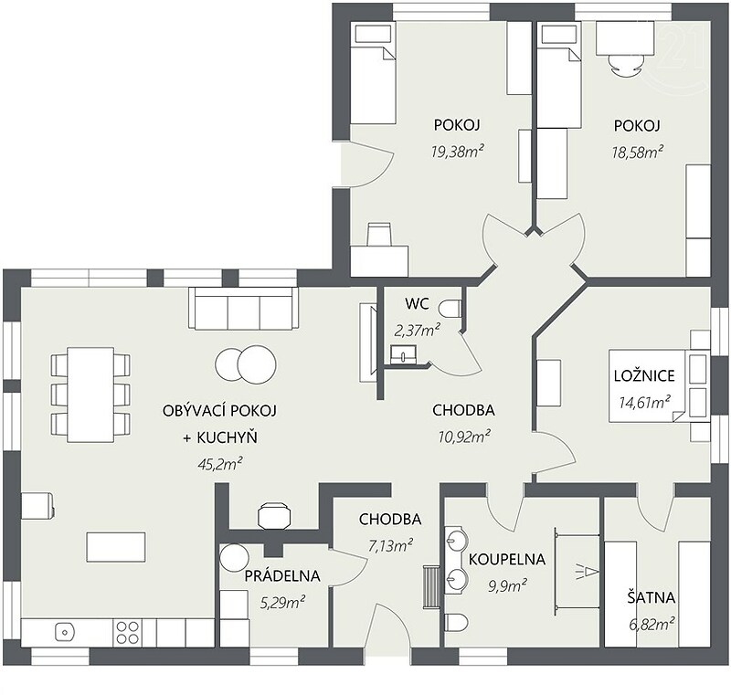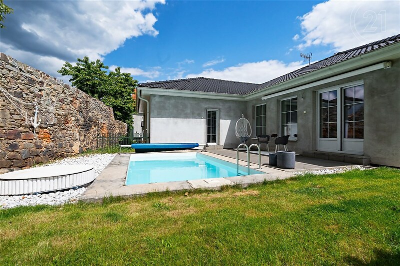 V rámci exkluzivního zastoupení mi dovolte Vám nyní nabídnout rodinný dům typu bungalov dispozice 6+kk. Podlahová plocha činí 136 m2 a jednotlivé místnosti jsou velmi prakticky řešeny. Obývací pokoj, ložnice a dětské pokoje jsou situovány do zahrady, tedy do klidné části s terasou a bazénem. Pokoje jsou světlé a prostorné. V chodbě, koupelně a na WC jsou kvalitní lité podlahy, v ostatních pokojích lamino. Teplo domova v chladnějších dnech obstarají krbová kamna a podlahové vytápění. Možnost připojení domu na plyn. Nemovitost sestává z těchto místností: • Obývací pokoj s kuchyní • Ložnice s šatnou • Dva dětské pokoje • Technická místnost • Koupelna s toaletou • Samostatná toaleta Zahrada je ideální velikosti pro běžnou údržbu. V letních měsících jistě oceníte slunný bazén a posezení na terase. Pro lepší představu jsme doplnili vizualizaci. Jak by dům a okolí bazénu mohlo vypadat. Stínění zajišťuje elektrická markýza. Dále ve všech oknech domu najdete kvalitní, venkovní žaluzie. Parkování pro dva osobní automobily máte hned vedle domu. Dům je postaven z Ytongu 44 mm a je zateplen 200 mm. Fasádu domu je potřeba dodělat, ale je to pro Vás možnost zvolit si barvu, dle vlastních preferencí. Střecha je značky Bramac. Na pozemku je také čistička odpadních vod. Zdroj vody je napojen na obecní řád. Projektová dokumentace je k dispozici. Dále je vypracována studie na výstavbu chodníků v obci Raková. Studie je k dispozici na webových stránkách obce. Raková je obec v okrese Rokycany v Plzeňském kraji. Leží při jihozápadním úpatí vrchu Kotel (575 m) necelých pět kilometrů jižně od Rokycan. Drobné potraviny nakoupíte v místní samoobsluze vzdálené 2 minuty chůzí. Veškerou občanskou vybavenost máte dojezdovou vzdáleností. Pokud Vás tato nemovitost zaujala, neváhejte a zavolejte nám. S možností financování a kompletního majetkového poradenství Vám rádi pomohou naši zkušení majetkový poradci.