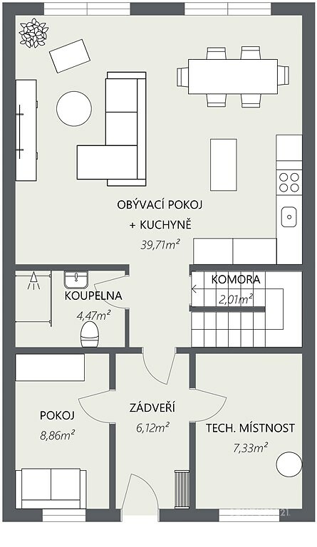 V rámci exkluzivního zastoupení Vám nyní nabízíme nízkonákladový, moderní rodinný dům v lukrativní lokalitě Hostouň u Prahy. Tento dům byl navržen s maximálním důrazem na prostor, detail a pohodlí rodinného života. Dům s výměrou 139 m² a promyšlená dispozice 6+kk poskytují dostatek prostoru pro každého člena rodiny – ať už hledáte ideální dětské pokoje, pracovnu pro home office, prostornou ložnici s vlastní šatnou nebo vzdušný obývací pokoj propojený s kuchyní a jídelnou, který se stane opravdovým srdcem domova. Velkou výhodou je také flexibilita prostoru – dispozici lze upravit podle individuálních potřeb. K domu náleží prostorná terasa s posezením, ideální pro rodinné obědy, grilování či klidné večery s přáteli. Zahrada o rozloze 645 m² nabízí široké možnosti využití – od dětského hřiště přes okrasné záhony až po případnou instalaci bazénu. Před domem jsou navíc dvě soukromá parkovací místa. Dům je vybaven moderními technologiemi, které zaručují vysoký komfort a velmi nízké provozní náklady: · tepelné čerpadlo IVT · rekuperační jednotka Brink · podlahové vytápění v celém domě Díky těmto prvkům dosahuje dům energetické třídy A – tedy úsporného a ekologického provozu. Hostouň u Prahy je ideálním místem pro rodiny, které chtějí žít v bezpečném, klidném prostředí s výbornou dostupností do hlavního města. Nachází se ve Středočeském kraji, v okrese Kladno, pouhých 16 km od centra Prahy. Nabízí tak perfektní kombinaci venkovského klidu a pohodlného dojíždění. Obec disponuje veškerou důležitou občanskou vybaveností: · Základní a Mateřská škola Hostouň · ordinace praktického lékaře · samoobsluha COOP · obecní obchod s potravinami · pošta · dětské hřiště a sportoviště Hostouň je živá obec, která pravidelně pořádá kulturní a sportovní akce, což posiluje místní komunitu a vytváří příjemné prostředí pro život s dětmi. Nesněte o svém bydlení a začněte žít svůj sen právě teď. S případným financováním Vám rádi pomohou naši zkušení finanční poradci.