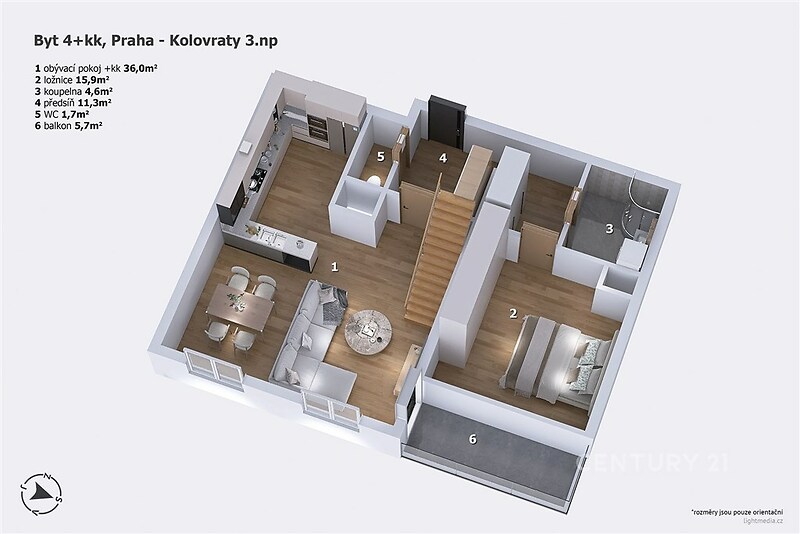 V srdci oblíbených pražských Kolovrat se otevírá jedinečný mezonetový byt 4+kk o velkorysé užitné ploše 121,9 m², který přináší výjimečné spojení prostoru, elegance a rodinného pohodlí. Tento domov není jen místem k bydlení – je to prostor pro život plný krásných okamžiků, soukromí a každodenního komfortu v harmonii s okolím. Dvoupodlažní řešení bytu dodává interiéru neopakovatelný charakter a pocit skutečného domu v rámci moderního bydlení. Chytře rozvržený prostor nabízí dokonalé oddělení společenské a klidové části, což vytváří ideální podmínky pro rodinný život, práci z domova i chvíle odpočinku. Každé patro má své kouzlo, svou atmosféru a přirozeně podporuje pocit vzdušnosti, svobody a nadstandardního prostoru. Po vstupu vás okouzlí světlo, které prostupuje interiérem, promyšlená dispozice a vysoký standard provedení, díky němuž je každý detail navržen pro maximální pohodlí. Balkón a terasa se stávají prodloužením obytného prostoru – místem pro ranní kávu za zpěvu ptáků, odpolední relax na čerstvém vzduchu nebo večery plné pohody pod širým nebem. Byt je situován ve druhém patře komorního třípatrového cihlového domu bez výtahu, což přináší klidnější bydlení, více soukromí a příjemnou atmosféru menší rezidence. Energetická třída B, kvalitní izolace a moderní vytápění zajišťují příjemné klima po celý rok a zároveň udržují provozní náklady na velmi příznivé úrovni. Kolovraty jsou místem, kde se snoubí klid, bezpečí a výborná dostupnost. Tato vyhledávaná lokalita nabízí ideální prostředí pro rodiny i všechny, kdo chtějí uniknout ruchu velkoměsta, aniž by se vzdali jeho výhod. V docházkové vzdálenosti najdete školy, školky, obchody, restaurace, zdravotní péči i sportovní zázemí. Výborné vlakové a autobusové spojení zajišťuje rychlou cestu do centra Prahy, zatímco okolní příroda, parky a zelené plochy vybízejí k aktivnímu odpočinku, procházkám i víkendové relaxaci. K bytu náleží dvě vyhrazená parkovací místa, která přinášejí ještě vyšší úroveň komfortu a usnadňují každodenní život. Tento mezonetový byt je ideální volbou pro ty, kteří hledají výjimečné bydlení s atmosférou rodinného domu, dostatkem prostoru pro všechny životní etapy a lokalitu, která nabízí skutečnou kvalitu života. Místo, kde každý den začíná s pocitem domova, kde prostor inspiruje a kde se pohodlí stává přirozenou součástí života. Stačí jediné – vstoupit a objevit, jak může vypadat vaše budoucnost.