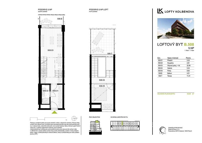 V zastoupení developera nabízíme k prodeji loftový byt 2+kk s balkonem (4 m2) a terasou (11 m2) s velkolepým výhledem na Prahu. Byt je orientovaný na západní stranu, takže v jarních a letních měsících si tak můžete vychutnávat posezení se sklenkou dobrého vína při západech slunce nad krásnou Prahou. Pro větší komfort je byt vybaven klimatizací, rekuperací, elektrožaluziemi a podlahovým topením. K bytu je možné přikoupit garážové zakladačové parkovací stání za 495 000 Kč. Tento developerský projekt získal ocenění jako uznání za nejlepší stavbu využívající stávající objekt v bývalé průmyslové lokalitě. Jedná se o objekt, který díky revitalizaci a rekonstrukci bývalé továrny ČKD se proměnil v moderní designové bydlení. Developer do 3. patra v bytech zachoval původní prvky z továrny, jako jsou například trámy a krakorce. Od 4. patra se jedná o novostavbu. V projektu můžeme najít byty od 1+kk až po 6+kk. Skvělá dopravní dostupnost, kde se před domem nachází zastávka tramvaje a metro Kolbenova 300 m od objektu. Přímo naproti je komplex Pragovka, nabízející jak kulturní, sportovní, tak kulinářské vyžití. Skoro za rohem se nacházejí obchodní centra jako Fénix a Galerie Harfa. Pro fanoušky sportovních zápasů a velkých koncertů ideální bydlení v blízkosti O2 arény a zároveň v blízkosti přírody jako Klíčovské sady. Byt je k dispozici ihned, pro více informací o objektu a jiných dispozic bytů/ateliérů přímo od developera mě prosím kontaktujte.