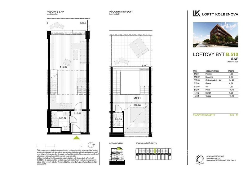 V zastoupení developera nabízíme k prodeji loftový byt 2+kk s balkonem (6 m2) a terasou (15 m2) s velkolepým výhledem na Prahu. Byt je orientovaný na západní stranu, takže v jarních a letních měsících si tak můžete vychutnávat posezení se sklenkou dobrého vína při západech slunce nad krásnou Prahou. V bytě se nachází v dolním patře koupelna s toaletou a v horním patře samostatná toaleta. Pro větší komfort je byt vybaven klimatizací, rekuperací, elektrožaluziemi a podlahovým topením. K bytu je možné přikoupit garážové parkovací stání za 595 000 Kč a sklep za 199 500 Kč. Tento developerský projekt získal ocenění jako uznání za nejlepší stavbu využívající stávající objekt v bývalé průmyslové lokalitě. Jedná se o objekt, který díky revitalizaci a rekonstrukci bývalé továrny ČKD se proměnil v moderní designové bydlení. Developer do 3. patra v bytech zachoval původní prvky z továrny, jako jsou například trámy a krakorce. Od 4. patra se jedná o novostavbu. V projektu můžeme najít byty od 1+kk až po 6+kk. Skvělá dopravní dostupnost, kde se před domem nachází zastávka tramvaje a metro Kolbenova 300 m od objektu. Přímo naproti je komplex Pragovka, nabízející jak kulturní, sportovní, tak kulinářské vyžití. Skoro za rohem se nacházejí obchodní centra jako Fénix a Galerie Harfa. Pro fanoušky sportovních zápasů a velkých koncertů ideální bydlení v blízkosti O2 arény a zároveň v blízkosti přírody jako Klíčovské sady. Byt je k dispozici ihned, pro více informací o objektu a jiných dispozic bytů/ateliérů přímo od developera mě prosím kontaktujte.