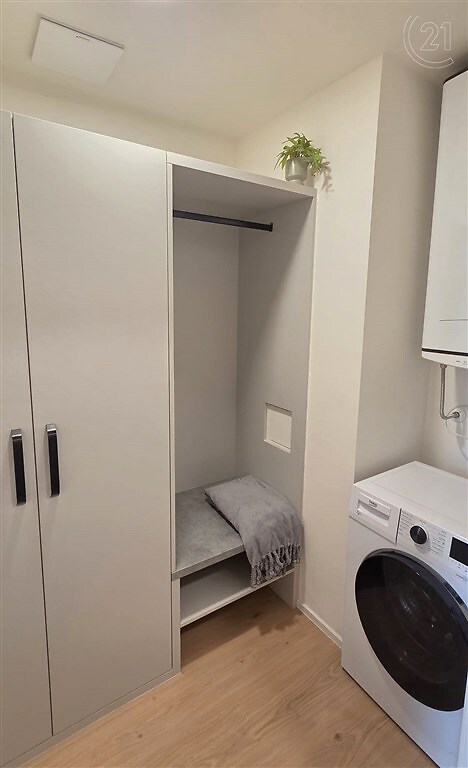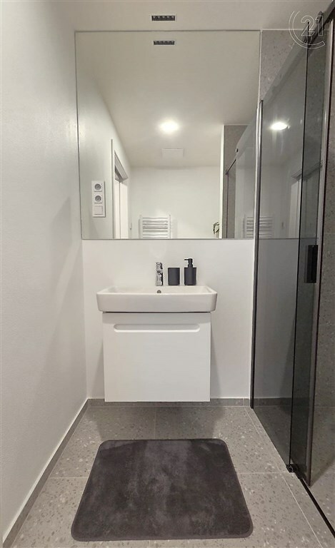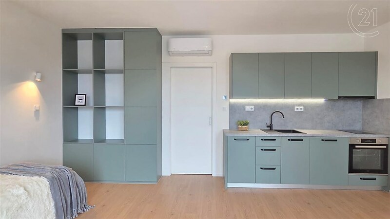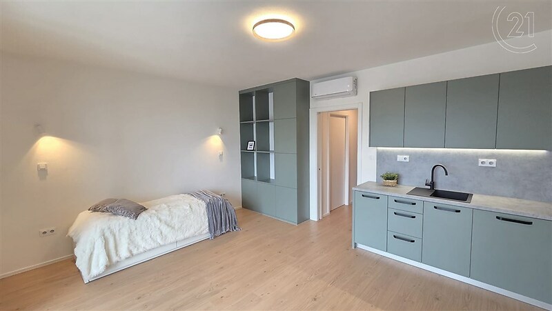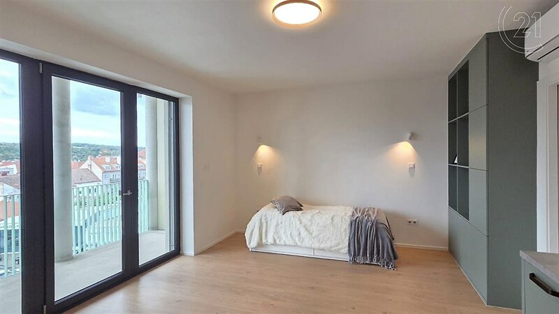 V zastoupení majitele nabízím k pronájmu krásný a částečně zařízený byt o dispozici 1+kk a ploše 35 m². Byt se nachází v novostavbě Rezidence Klement na ulici Kotkova ve Znojmě. Atraktivitu tohoto bytu charakterizuje nejenom šatna s šatní skříní a pračkou, ale také velkorysá lodžie o výměře 9,5 m² s výhledem na Kraví horu, kostel Sv. Mikuláše či radniční věž. Byt se nachází v 5. NP s okny i lodžií orientovanými na západ. Je nabízen částečně vybaven: spotřebiči vybavená kuchyňská linka, obývací skříň s policemi, koupelna s toaletou a sprchovým koutem. Velkým bonusem tohoto bytu je kromě velkorysé lodžie již zmíněná šatna. Byt je vytápěn elektrickým podlahovým topením a vybaven klimatizací. Je možné také pronajmout garážové parkovací stání. Cena nájmu je 11 500 Kč měsíčně + zálohy na energie 3 700 Kč. Majitel požaduje kauci ve výši 3 měsíčních nájmů, tj. 34 500 Kč Odměna RK je ve výši jednoho měsíčního nájmu + 21% DPH, tj. 13 915 Kč Jedná se o nadstandartní bydlení nedaleko centra Znojma v polyfunkčním domě, v pěší vzdálenosti od obchodních domů Albert a Lidl, stejně tak i na autobusové nebo vlakové nádraží a v kombinaci s výše uvedeným toto vše činí z bytu nadmíru zajímavé bydlení. V případě zájmu o prohlídku mě neváhejte kontaktovat.