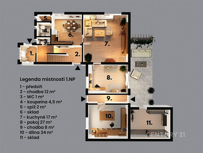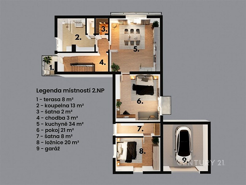 Ve výhradním zastoupení majitele nabízím prostorný rodinný dům o dispozici 6+1 se zahradou v obci Sehradice. Zastavěná plocha domu činí 115 m², užitná plocha 229 m² a celková plocha pozemku 646 m². Dům nabízí dostatek prostoru pro rodinné bydlení a díky dvěma samostatným vstupům také možnost vytvoření dvou bytových jednotek. Dispozice domu Podzemní podlaží: garáž 30 m², sklad 15 m². 1. nadzemní podlaží: chodba 12 m², WC 1 m², kuchyně 17 m², koupelna 4,5 m², spíž 2 m², obývací pokoj 30 m², pokoj 27 m², dílna 34 m², chodba 8 m². Mezipatro: terasa 8 m² s výhledem do zahrady a okolní krajiny. 2. nadzemní podlaží: chodba 3 m², koupelna 13 m², šatna 2 m², pokoj 21 m², pokoj 20 m², pokoj 34 m², pokoj 8 m². Technické informace Dům prošel moderní rekonstrukcí. Vytápění je řešeno kombinací plynového kotle (2025), kotle na tuhá paliva a krbu v obývacím pokoji. Elektřina je třífázová, okna plastová, podlahy dlažba, vinyl a PVC. Součástí domu je také bezbariérový přístup se schodišťovou plošinou. Energetický štítek zatím nebyl doložen, proto je uvedena třída G. Tento dům má velký potenciál jako rodinné bydlení, dvougenerační bydlení s možností využití prostor podnikatelského záměru, jako investiční nemovitost ke zřízení penzionu. Lokalita V přímé blízkosti domu se nachází mateřská a základní škola, restaurace, kulturní dům, autobusová zastávka i park pro rodiny s dětmi. Sehradice leží přibližně 7 km od Luhačovic, 16 km od Zlína a 14 km od Uherského Brodu. Velkým benefitem také je , že se v obci nachází moderní sportovní areál s fotbalovým a multifunkčním hřištěm pro tenis i další sporty, kde se během roku konají sportovní, kulturní i rodinné akce a koncerty. Součástí obce je také moderní koupaliště se zázemím pro letní relaxaci. Kupujícím zajistím kompletní servis včetně financování ve spolupráci s jedním z nejlepších hypotečních specialistů v České republice. Konzultace k hypotéce je zdarma. Ráda vás tímto domem osobně provedu a představím vám všechny jeho přednosti.