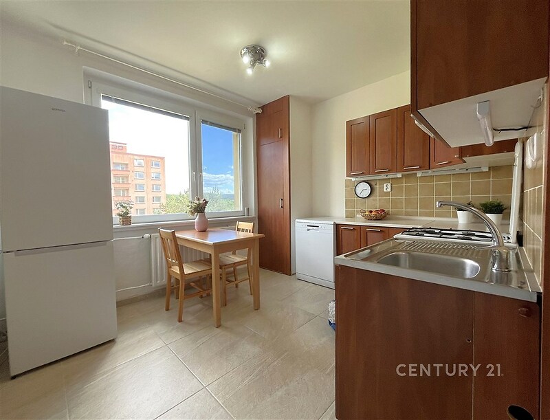 Ve výhradním zastoupení majitele nabízíme ke koupi byt v osobním vlastnictví o dispozici 1+1 ve vyhledávané lokalitě Brno Bystrc. Byt má celkovou plochu 41 m2 a nachází se ve 4.NP bytového domu. Bytový dům je po revitalizaci (plastová okna, fasáda, zateplení, stupačky, moderní výtah). Bytovou jednotku tvoří chodba, obývací pokoj, kuchyně s kuchyňskou linkou (vybavenou sporákem s troubou, ledničkou s mrazákem a myčkou), koupelna spojená s WC a velice prostorná komora. K bytu náleží sklep o výměře cca 2 m2. Měsíční náklady jsou 3.580, vč. fondu oprav + zálohy na elektřinu (1.330,) a plyn (270,). Dům se nachází ve zcela klidné ulici. PENB má kategorii C. Parkování před domem. Doporučujeme jako investici nebo jako startovací bydlení. V dané lokalitě se nachází kompletní občanská vybavenost, dobrá dostupnost MHD a přístup na dálnici. Pro další informace a sjednání prohlídky volejte makléřku.