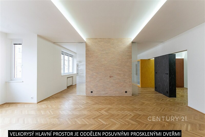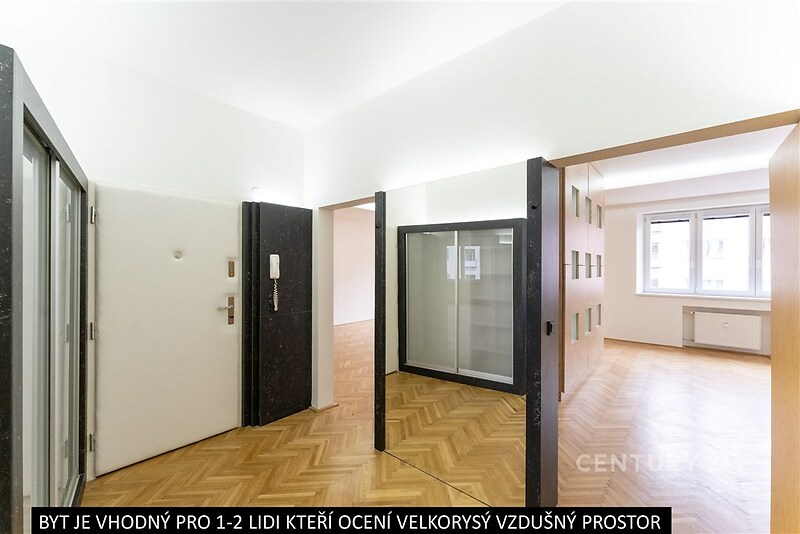 Ve výhradním zastoupení nabízíme k pronájmu prostorný a světlý byt 2+1 (možno využívat i jako reprezentativní kancelář) o velikosti 88,6 m2 v 5. nadzemním podlaží bytového domu (s výtahem) na nároží, ulic Kotlářská/Bayerova. Skvělá poloha v dosahu centra a s výbornou dostupností MHD. Hlavní benefity • Nadstandardní interiér řešený na míru, velkorysé a vzdušné dispozice • Dva prosvětlené pokoje: 35 m2 a 22,5 m2, oddělené vestavěnými skříněmi a posuvnými prosklenými dveřmi • Prostorná koupelna s velkou vanou i sprchovým koutem (9,2 m2) • Samostatná kuchyně 10 m2, předsíň 8 m2 s úložnými prostory • Plastová okna se žaluziemi, podlahy parkety a dlažba • Topení a ohřev vody centrálně • Veškerá vybavenost v docházkové vzdálenosti Dispozice a vybavení • Kuchyně: kuchyňská linka, elektrický sporák, digestoř, spíž • Koupelna: vana, sprchový kout, umyvadlo, WC • V případě zájmu možno využívat sklepní kóji • Byt je nabízen jako nezařízený Náklady a podmínky • Nájemné: 25 000 Kč/měsíc (bez energií) • Zálohy na energie: 5 810 Kč (1 osoba) / 7 960 Kč (2 osoby) • Kauce: 1× měsíční nájemné • Provize RK: 1× měsíční nájemné + DPH • Vhodné pro 1–2 osoby (2 obytné místnosti mají mezi sebou posuvné prosklené tabule) • Nájemní smlouva na 1 rok s možností prodloužení • Byt je volný ihned Lokalita • Ulice Kotlářská – pár minut od centra, kompletní občanská vybavenost, obchody, kavárny, služby, rychlé spojení MHD • Parkování: v rámci okolních ulic Máte zájem o prohlídku? Ozvěte se mi, rád vám byt na Kotlářské osobně ukážu.