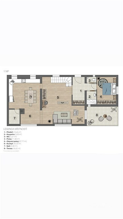 Ve výhradním zastoupení nabízíme ke koupi jedinečný rodinný dům 5+1 se zahradou v obci Libiš. Dům o celkové užitné ploše 170 m² a terase 16 m² (celkem 186 m²) prošel kompletní rekonstrukcí se zachováním původních prvků venkovského stavení a spojuje původní charakter a moderní standard s důrazem na pohodlí a soukromí. S využitím nových technologií, celkového zateplení spolu s původním zdivem místy až 60 cm šíře se v domě udržuje velmi příjemné klima. Skládá se ze dvou bytových jednotek, každá s vlastním vstupem, zahradou a parkovacími místy. Dominantou interiéru v přízemí je prostorná kuchyň s klenutými stropy, zařízená kuchyňskou linkou na míru s vestavěnými spotřebiči, jídelním koutem se stylovými krbovými kamny, který plynule navazuje na obývací prostor s přímým vstupem na slunnou terasu orientovanou na jižní stranu, navazující na soukromou zahradu. Každá kuchařka zde ocení prostornou spíž v kuchyni, prostor pro uložení suchých potravin, zeleniny či velkého mrazícího boxu. Dále se v přízemí nachází samostatný pokoj, který lze využít jako kancelář nebo pokoj pro hosty, a samostatná toaleta s prostorem pro umístění pračky. Po kvalitním dřevěném schodišti se vchází do obytného podkroví s vysokými stropy a přiznanými trámy, které umocňují původní atmosféru venkovského stavení. Nachází se zde tři prostorné pokoje a velká koupelna s toaletou, jejíž dominantou je volně stojící moderní vana. Na koupelnu navazuje místnost, která může sloužit jako prádelna, sušárna nebo šatna. Dům disponuje teplovodním podlahovým topením napojeným na špičkové tepelné čerpadlo – vzduch/voda – značky NIBE (Švédsko), které v letních měsících funguje také jako chlazení. Na jižní straně jsou instalovány předokenní žaluzie, které zajišťují příjemnou tepelnou pohodu i soukromí. V přízemí je položena dlažba, v patře jsou pak vinylové podlahy. Okna v dekoru reálného dřeva jsou s izolačními trojskly. Ve všech pokojích jsou již datové rozvody. Samozřejmostí je také příprava na solární panely, kompletní rozvody pro nabíjecí stanici elektromobilu, předokenní žaluzie (body skryté ve fasádě) na dálkové ovládání (ovladačem i telefonem) a zabezpečovací systém. To vše dělá z domu skutečně nadčasovou nemovitost s parametry pasivního bydlení. Lokalita Libiš se pyšní velmi dobrou občanskou vybaveností – školka, škola, zdravotní středisko, 3 km vzdálené nové obchodní centrum. Skvělou dopravní dostupnost do Prahy zajišťuje přímé vlakové spojení na Hl. nádraží nebo Pražská integrovaná doprava na Prahu 8 – metro Ládví nebo Letňany. Zároveň poskytuje klidné prostředí s možností výletů do okolí. Tato nabídka představuje výjimečnou příležitost ke koupi nemovitosti, která spojuje kvalitu, komfort a harmonii bydlení.