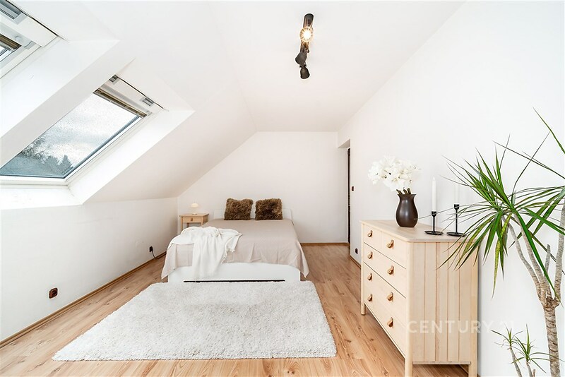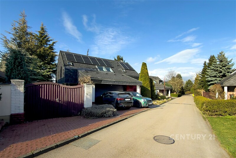 Ve výhradním zastoupení vám nabízíme reprezentativní členitý rodinný dům s dvougaráží, zahradou a bazénem, kde si každý člen rodiny najde své soukromí a zároveň celá rodina může trávit společný čas bez omezení na zahradě u bazénu nebo u vnitřního krbu ve velkém obývacím pokoji a ve společných prostorách rozlehlého domu. Klidné bydlení celé rodiny na zastavěném pozemku 185m2 s užitnou plochou 330m2 a zahradou dalších 524m2 zajišťuje naplnění všech společenských potřeb a zároveň klidného odstíněného bydlení v přírodě. Nemovitost čítá nejen nadstandardní dispozici 6+kk, ale i množství technických místností, úložných prostor a praktických zákoutí, vše jako stvořeno pro naplněný rodinný život. Přízemí disponuje zádveřím, technickým zázemím, předsíní, velkým obývacím pokojem s krbovými kamny a jídelní částí, technickými místnostmi, pokojem, WC, koupelnou a prostornou dvougaráží. V patře kromě jiného nalezneme prostornou pracovnu spojenou designovým schodištěm s obytným prostorem, dále 4 další ložnice, šatnu a dvě koupelny s oddělenými wc. Nezanedbatelným benefitem jsou plně osazené solární panely umístěné v r. 2023. Dům stojí v klidné zástavbě stejných rodinných domů a tvoří esteticky hodnotný celek soukromého bydlení. Veškerá infrastruktura je v místě, mezinárodní škola a dosah na letiště Václava Havla 5 min autem. Doporučujeme prohlídku.