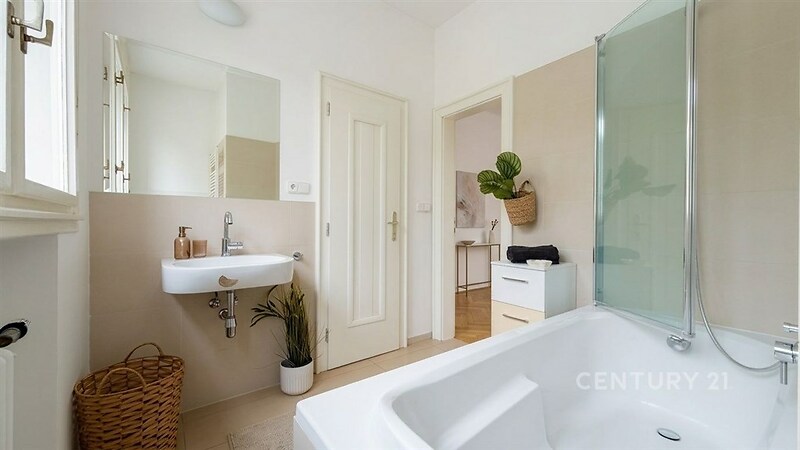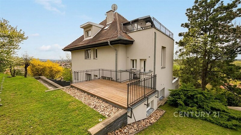 Ve výhradním zastoupení vám nabízíme unikátní prvorepublikovou vilu Adolfa Hlaváčka v obci Nosislav, na ulici Masarykova, situovanou na rozlehlém pozemku o výměře 8 160 m². Tato architektonicky hodnotná nemovitost byla postavena v roce 1929 podle návrhu modernistického architekta Antonína Mendla. V roce 2012 prošla citlivou rekonstrukcí pod vedením architektonického studia, která respektovala původní charakter domu a zachovala jeho autentické prvky, zároveň však přinesla komfort moderního bydlení. Vila je ve výborném technickém stavu. Rozkládá se na 4 patrech, přičemž v každém patře se nachází jedna bytová jednotka: 1NP: byt o dispozici 3+1 a výměře 102,7 m2 (výměra celého patra je 121,3 m2) plus 19 m2 terasa 2NP: byt o dispozici 3+1 a výměře 101,4 m2 (výměra celého patra je 112,6 m2) plus 33,1 m2 terasa 3NP: byt o dispozici 3+1 a výměře 98,2 m2 (výměra celého patra je 108,4 m2) plus 2,9 m2 terasa 4NP: byt o dispozici 2+kk a výměře 89,7 m2 plus 20 m2 terasa (výměra celého patra je 89,7 m2). Celková vnitřní podlahová plocha je tedy cca 432 m2 plus 75 m2 teras plus cca 14 m2 samostatně stojící technická místnost. Zastavěná plocha je 163 m2. Vytápění je zajištěno tepelným čerpadlem, nemovitost je napojena na veřejný vodovod a kanalizaci. Je vhodná pro velkorysé vícegenerační bydlení, jako sídlo firmy či jako ubytovací kapacita, což odpovídá i momentálnímu využití dané nemovitosti. Je zde i investiční potenciál, a to rozdělení na 4 bytové jednotky a následný rozprodej těchto samostatných bytů. Vila tak představuje spojení historie, elegance a investiční příležitosti, které se na trhu objevují jen výjimečně. Ze všech pater vily i ze samotného pozemku je nádherný výhled do okolí. Na pozemku jsou okrasné dřeviny a rostliny, ale i ovocné stromy. Níže na pozemku pod vilou se nachází i skladový prostor a původní garáž náležející k vile. PENB se zpracovává. Pro více informací či sjednání prohlídky volejte makléřku.