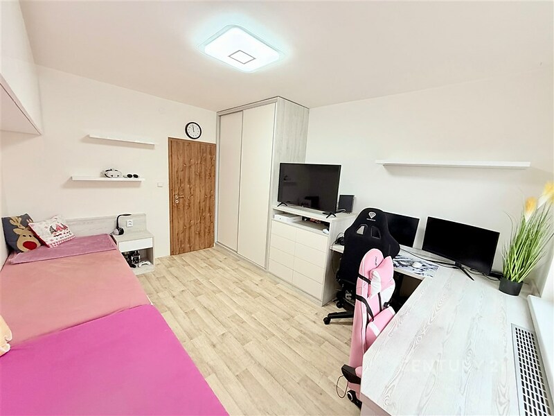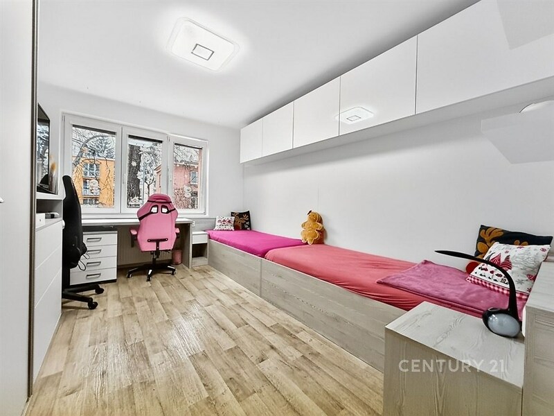 Ve výhradním zastoupení Vám nabízíme výjimečný byt o dispozici 4+1 a podlahové ploše 95 m², který se nachází v jedné z nejoblíbenějších částí Hodonína – Bažantnici. Lokalita je vyhledávaná pro svůj klid, množství zeleně a zároveň perfektní dostupnost všech služeb. Byt se nachází v 1. nadzemním podlaží revitalizovaného cihlového domu se zateplenou fasádou a novými plastovými okny. Energetická náročnost budovy je zařazena do kategorie C – úsporná. Samotná bytová jednotka prošla rekonstrukcí a nabízí velmi příjemné, promyšlené rodinné bydlení s dostatkem prostoru i úložných možností. Dispozice bytu je prakticky řešena s důrazem na pohodlí každodenního života. Po vstupu do bytu Vás přivítá prostorná chodba s vestavěnými skříněmi, které elegantně řeší každodenní potřebu úložného prostoru a přispívají k čistému, uspořádanému dojmu z interiéru. Obývací pokoj představuje přirozené centrum domova. Díky lodžii orientované na jihozápad je krásně prosvětlený po většinu dne a nabízí příjemné místo pro odpočinek i společné chvíle s rodinou. Obývací stěna může po dohodě zůstat součástí vybavení. Kuchyně je řešena jako samostatná místnost, což ocení zejména ti, kteří preferují oddělení vaření od obytného prostoru. Je v moderním provedení a vybavena vestavěnými spotřebiči včetně myčky nádobí. Praktickým benefitem je také instalovaný změkčovač vody. Klidová část bytu nabízí komfortní ložnici s vestavěnými skříněmi po celé šířce místnosti, které poskytují velkorysý úložný prostor. Venkovní žaluzie zajišťují ničím nerušený odpočinek a příjemné klima i v letních měsících. Dětský pokoj je kompletně řešen na míru a vytváří plnohodnotné zázemí pro dvě děti – prostor pro spaní, učení i dostatek úložných míst. Součástí bytu je také další malý samostatný pokoj, který lze využít jako pracovnu, pokoj pro hosty, šatnu nebo praktickou místnost pro uložení sezónních věcí. Vytápění je zajištěno vlastním plynovým kotlem, což umožňuje efektivní kontrolu nad provozními náklady. K bytu náleží také prostorný zděný sklep. Velkou výhodou je bezproblémové parkování přímo u domu. Umístění domu na konci slepé ulice zajišťuje minimální provoz, větší soukromí a celkově klidné prostředí pro bydlení. V bezprostřední blízkosti se nachází kompletní občanská vybavenost – potraviny, restaurace, škola, školka i zastávka MHD. Lokalita tak spojuje pohodlí městského života s příjemnou atmosférou čtvrti plné zeleně. Tento byt představuje ideální kombinaci prostoru, klidné lokality a komfortního rodinného bydlení.