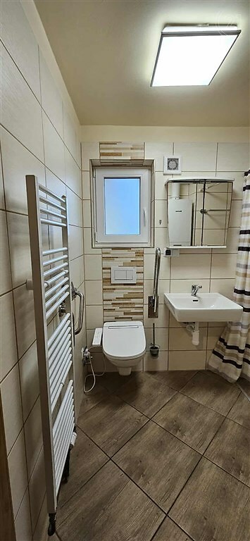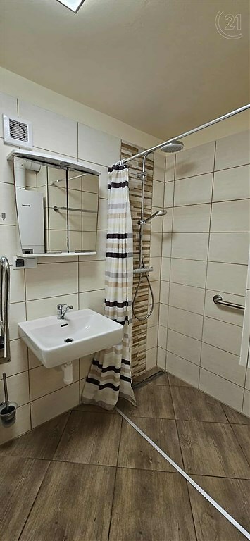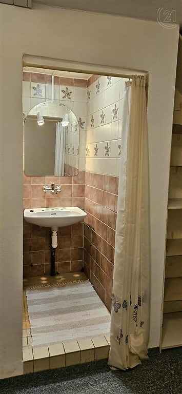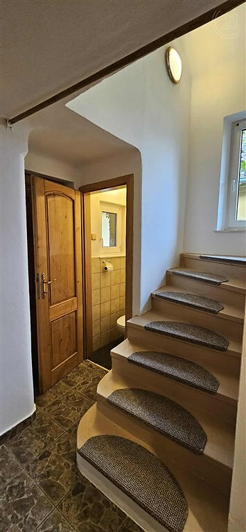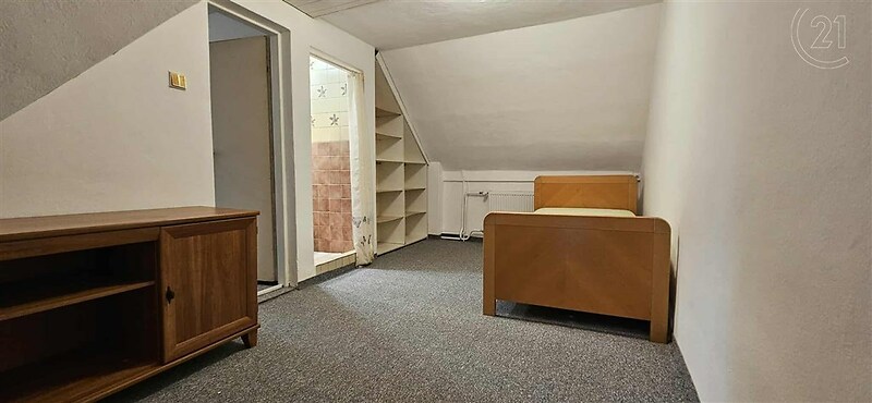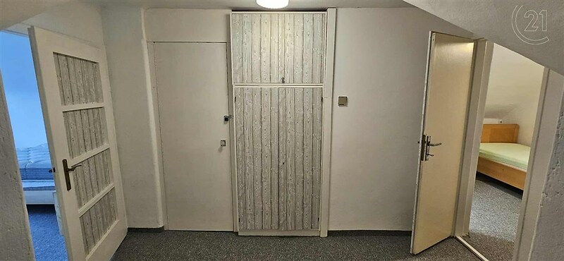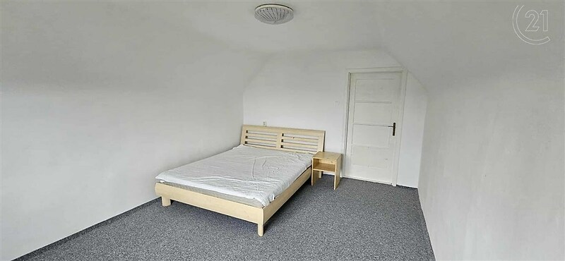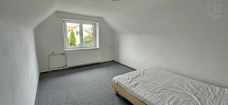 V podkroví jsou k dispozici další dvě ložnice (15,6 m2 + 14m2 s umyvadlem). Prostory byly nově vymalovány.