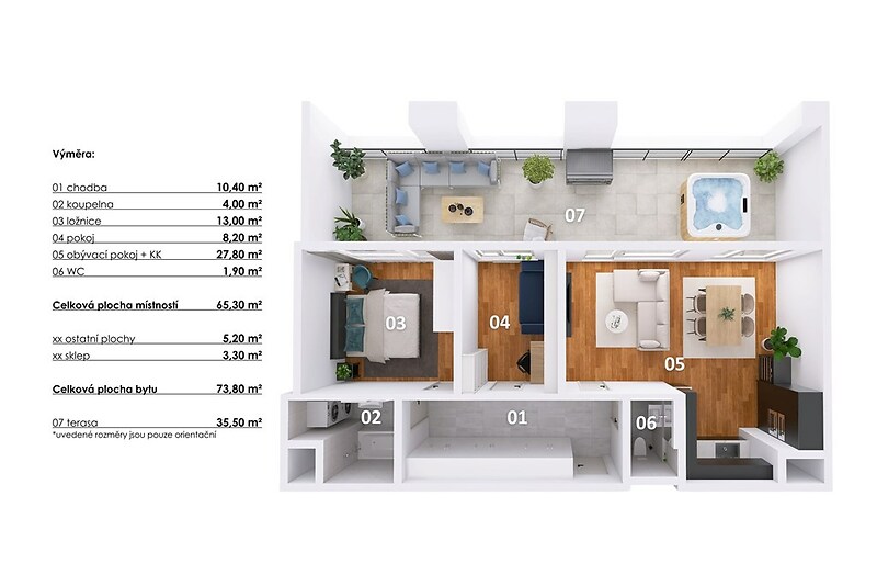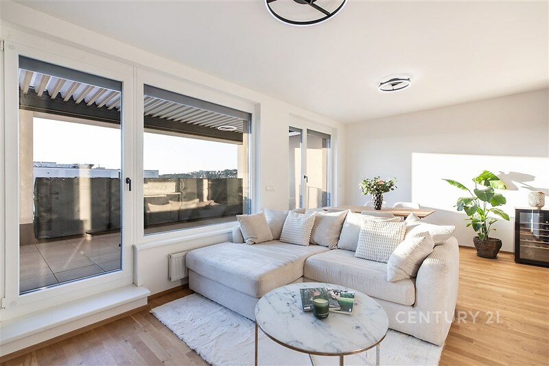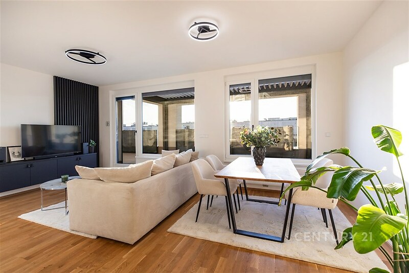 Vítejte v exkluzivním střešním bytě, který spojuje nadstandardní komfort, moderní technologie a klidné soukromí s dechberoucím výhledem na západní obzor Prahy. Tento výjimečný byt v nejvyšším podlaží moderní rezidence Vivus Kolbenova nabízí vše, co si lze od moderního městského bydlení přát – rozlehlou západní terasu o velikosti 35,5 m², kvalitní provedení a promyšlené detaily v každém koutě. Dominantou bytu je prostorná terasa táhnoucí se po celé délce bytu, která se stane vaším osobním útočištěm nad městem. Součástí je bioklimatická pergola (17 m²) se screenovými roletami a integrovaným LED osvětlením, vše ovladatelné dálkově či mobilní aplikací. Připraveno je také kompletní zázemí pro vířivku – vývod vody, zásuvky, osvětlení i zpevněná plocha. A aby bylo vaše léto dokonalé, součástí prodeje je nová vířivka Intex Deluxe pro 4 osoby. Interiér bytu byl navržen s důrazem na kvalitu, funkčnost a estetiku. Jednotka je vybavena moderními technologiemi, které zajišťují zdravé prostředí a nízké provozní náklady (poplatky za služby činí 5 700, Kč plus 1300, Kč elektřina) : Centrální rekuperace vzduchu – čerstvý vzduch bez nutnosti větrání, se zpětným získáváním tepla. Klimatizace Toshiba A+++ ve všech obytných místnostech, která se ovládá přes aplikaci Toshiba Home. Předokenní žaluzie Somfy Z70 – plně automatické, řízené dálkově nebo aplikací. Optické připojení Fiber – TMobile, O2, Vodafone a další. V bytě dominuje zakázkový vestavěný nábytek zhotovený na míru: elegantní TV sestava s lamelami, šatní a technické skříně, koupelnové sestavy s LED zrcadly, šatna v ložnici i knihovna v pracovně. Německá kuchyň je vybavena spotřebiči Haier, včetně vinotéky. Interiér dotváří luxusní dveře bezfalcové konstrukce (výška 2,1 m) s trojitým lakem Polar, černým kováním M&T Lusy a magnetickými zámky. Materiály prémiové kvality, nadstandardní vybavení a promyšlené detaily podtrhují pocit skutečného luxusu a komfortu : Podlahy: dřevěné třívrstvé, dekor dub přírodní, olej. Koupelna a WC: obklady a dlažba Marazzi v šedých tónech, baterie Grohe z nerezové oceli. Vstupní dveře: bezpečnostní třída 3, protipožární. Okna: plastová s trojsklem pro maximální úsporu energie. Součástí prodeje je také garážové stání s exkluzivním umístěním přímo u výtahu v 1. PP a sklepní kóje (3,3 m²) hned vedle výtahu v 2. PP za příplatek. Lokalita Vysočan nabízí kompletní občanskou vybavenost obchody, kavárny, restaurace, školy a školky, parky i výbornou dopravní dostupnost do centra Prahy stanice metra B (stanice Kolbenova je jen 130 metrů). Na cyklostezce podél říčky Rokytky si můžete zaběhat, projet se na kole nebo inlinech. Park Zahrádky nabízí rozsáhlé dětské hřiště či venkovní posilovnu. Pouze jednu stanici metra je vzdáleno obchodní nákupní centrum Galerie Fénix se širokou nabídkou služeb včetně fitness či wellness. Tento byt je dokonalou volbou pro ty, kteří hledají kombinaci městského životního stylu a soukromé oázy nad Prahou.