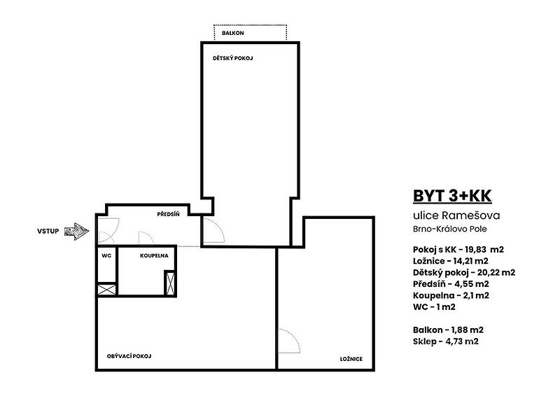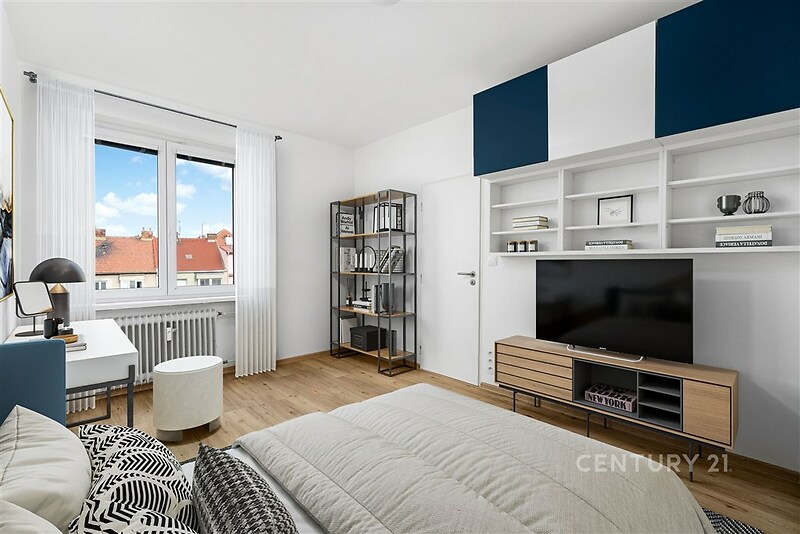 Vyhledávaná lokalita v blízkosti parku, praktická dispozice a provedená rekonstrukce… To jsou parametry, které nejlépe vystihují právě tento byt 3+KK, který je umístěný v bytovém domě na ulici Ramešova v městské části Královo Pole v Brně. Byt je umístěný ve 4. nadzemním podlaží z celkem čtyř nadzemních podlaží cihlového bytového domu bez výtahu. Samotný bytový dům je po provedené kompletní revitalizaci. Výhodou je také uzavřená společná zahrada za domem a v domě poté kolárna a sušárna. Byt samotný nabízí plochu bezmála 62 m2 a dále k němu patří balkon o výměře 1,88 m2 a zděný sklep o ploše 4,73 m2. Dispozice se skládá ze vstupní chodby s vestavnými skříněmi, obývacího pokoje s kuchyňským koutem, dvou neprůchozích pokojů, koupelny a toalety. Koupelna je vybavena sprchovým koutem a nabízí také prostor pro pračku. Kuchyně je vybavena vestavnými spotřebiči – elektrická trouba, mikrovlnná trouba, plynová varná deska, digestoř, myčka. Nespornou výhodou je provedená rekonstrukce bytu, díky které lze okamžitě začít byt využívat jak na pronájem, tak k vlastnímu bydlení. V rámci rekonstrukce proběhla také změna dispozice z původního 3+1 na 3+KK. Dále byla modernizována koupelna s toaletou včetně rozvodů a všechny povrchy v bytě. V neposlední řadě byla vyměněna také kuchyňská linka. Okna jsou plastová s izolačními dvojskly. Topení je zajištěno centrálně. Ohřev vody je řešen lokálně v bytě plynovým kotlem. Plyn v bytě slouží dále také na vaření. Měsíční náklady spojené s užívání bytu činí 1.350 Kč záloha za elektřinu, 570 Kč záloha za plyn, 2.587 Kč záloha za topení, elektřinu spol. prostor a ostatních nákladů vůči SVJ. Příspěvek do fondu oprav činí 1.799 Kč. Platby činí měsíčně celkem 6.306 Kč v případě užívání bytu pěti osobami. Pokud tedy právě hledáte byt k okamžitému užívání, určitě si nenechejte ujít tuto nabídku. Díky umístění v blízkosti technologického parku a zároveň v dosahu centra města je byt vhodný jak pro vlastní bydlení, tak k pronájmu. Devízou je také umístění v udržovaném cihlovém domě na klidné ulici s dětským hřištěm a malým parkem přímo před domem. Pro více informací se na nás neváhejte obrátit, osobní prohlídky jsou možné po předchozí telefonické dohodě, byt je k dispozici ihned.