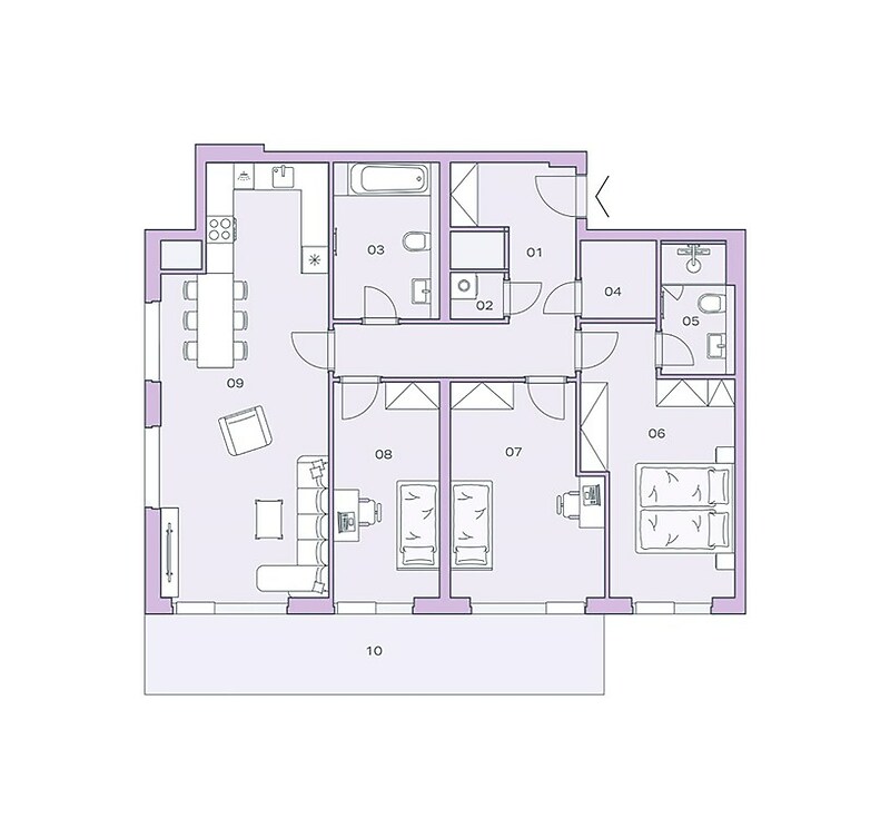 Základní informace o bytu: - Dispozice 4+kk a celková plocha 135.8 m2 - Nachází se ve 8. podlaží. Jednotka je orientována na jihozápad - Balkon s výměrou 19.5 m2 - V dispozici je prostorný obývací pokoj s kuchyňským koutem a samostatné WC - K jednotce náleží sklepní kóje o výměře 1.6 m2 - Jednotka ve standardu Fit out je dokončena do finálních povrchů včetně sanity a obsahuje přípravné body pro kuchyni Informace o projektu: - Posuvná velkoformátová okna, podlahové vytápění, rekuperace, chlazení, alternativní zdroje energie pro snížení nákladů (tepelná čerpadla a fotovoltaika) - Projekt má také střešní terasu přístupnou všem obyvatelům - 5 pater garáží - celkem 220 parkovacích stání pro automobily a 16 pro motorky - Samozřejmostí budou nabíjecí stanice pro elektromobily Benefity: - Symbióza s vedle stojícím projektem Vanguard, která je podpořená i tunelem funkčně propojujícím obě nemovitosti, nabízí netušené možnosti vyžití - K dispozici plně vybavené fitness, spa & wellness zónu s finskou saunou a párou, a také 18 metrů dlouhý prosklený bazén Lokalita: - Praha Modřany - Golfové hřiště s výhledy na Vyšehrad - Modřanská cyklostezka - Rozlehlý lesopark Hodkovičky - Divadlo Na Cikorce a nedaleké Divadlo Bravo - A pro milovníky kina je zde Modřanský biograf Restaurace a kavárny - Jen pár kroků od břehu najdete úžasný gastrokoncept Rosmarina zahrnující terasu, okénko, bistro se streetfoodem a restauraci. - Restaurace Cuga je zase součástí golfového hřiště Hodkovičky - V areálu bývalého modřanského cukrovaru je utajený klenot Cukrkandl s barem a kavárnou a také jedinečným zázemím nejen pro rodiny s dětmi - Na Sofijském náměstí v Modřanech probíhají sezónní farmářské trhy